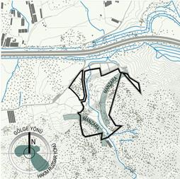 Arazide yer alan mevcut dere-Acem Deresi izi mekan organizasyonunda mimari ve kentsel programı besleyen ana omurgayı -eko|alle– oluşturmaktadır. Araziyi bölen mevcut iki fay hattı, ekolojik tampon olarak yorumlanarak mevcut zeytinler ve maki örtüsü korunarak doğal ortam kimliğinin sürekliliği gerçekleştirilmiştir. Bu çerçevede, vadinin iki yanında yerleşerek, dere izi boyunca topografyaya tutunan, kuzey-güney aksında önerilen eko|alle, bir yaşam omurgası oluşturur. Arazi eğimiyle uyumlu, lineer biçimde, birbirine akan ara yüzlerden oluşan eko|alle, dere boyuna lineer kurguda dağıtılmış farklı program elemanlarını, birbirine yatayda kesintisiz yaya sirkülasyonu ile bağlanmaktadır; yürüyüş yolları yer yer genişleyerek, toplanma ve dağılma mekanlarına dönüşmektedir. Bu mekan organizasyonu, sürdürülebilirlik eksenli hedeflere de yanıt vermektedir.