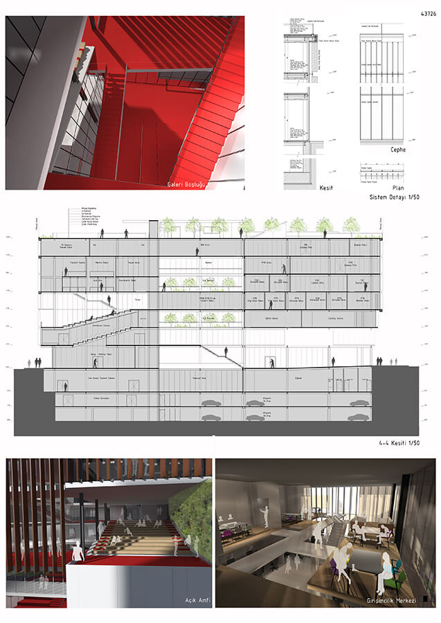 Kentin yeni yaratıcılık merkezi olma iddiasıyla, iş merkezi bölgesindeki varlığıyla dinamo etkisi yaratan, gece-gündüz yaşayan, kamusal olarak kullanılabilen ve deneyimlenebilen, maksimum boyutlardaki YARATICILIK HACMİ İÇİNDE MAKSİMUM KAMUSAL BOŞLUK yaratmak projenin temel motivasyonudur. İnsan yoğunluğunu bölgenin iç kısımlarına doğru taşıyan zemin kattaki mekânsal geçirgenliğin yapının üst katlarına kadar sürdürülmesi, oluşturulacak KAMUSAL BOŞLUK ile beraber bu KENTSEL PROMENAD’ın çatı katına kadar devam ettirilmesi amaçlanmıştır.